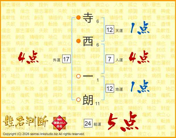 寺西一朗さんの総運は24画の5点!