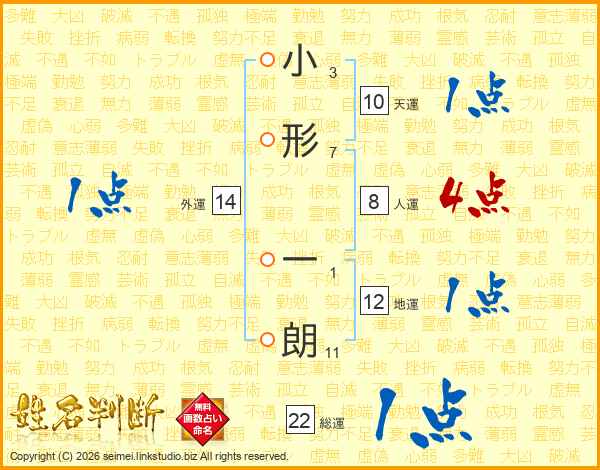 小形一朗さんの総運は22画の1点!