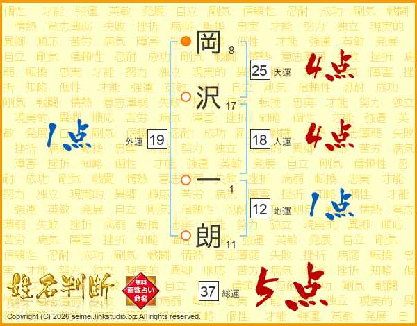 岡沢一朗さんの総運は37画の5点!
