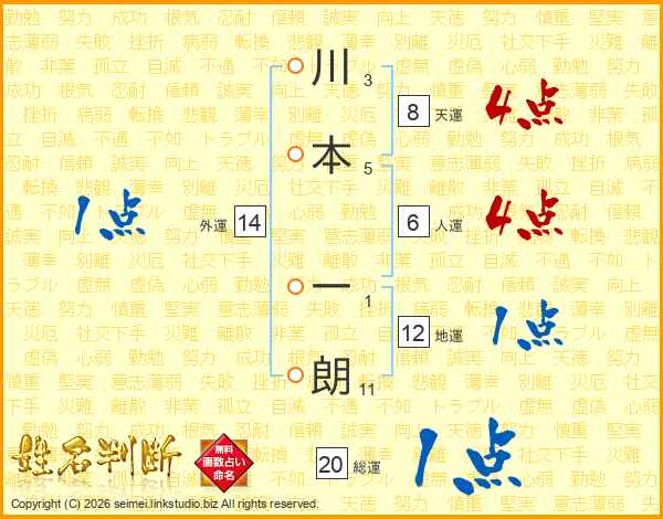 川本一朗さんの天運は8画の4点!