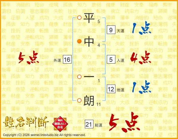 平中一朗さんの総運は21画の5点!