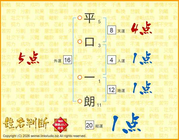 平口一朗さんの人運は4画の1点!