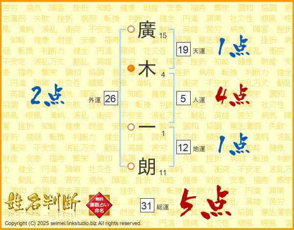 廣木一朗さんの総運は31画の5点!