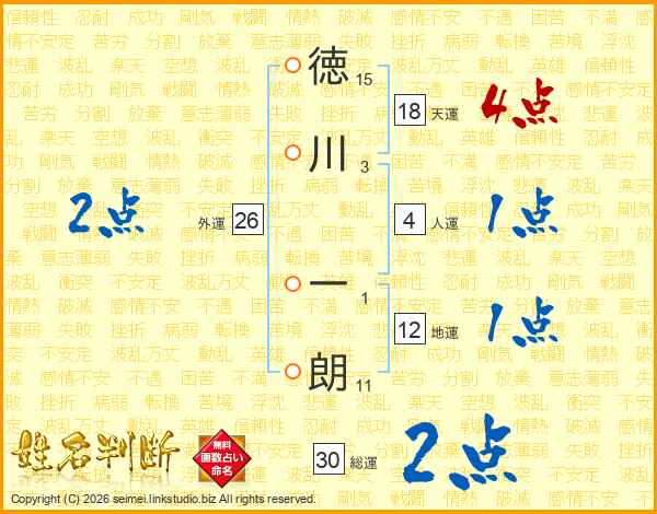 徳川一朗さんの総運は30画の2点!
