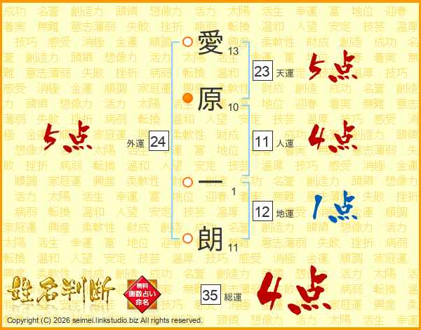 愛原一朗さんの総運は35画の4点!