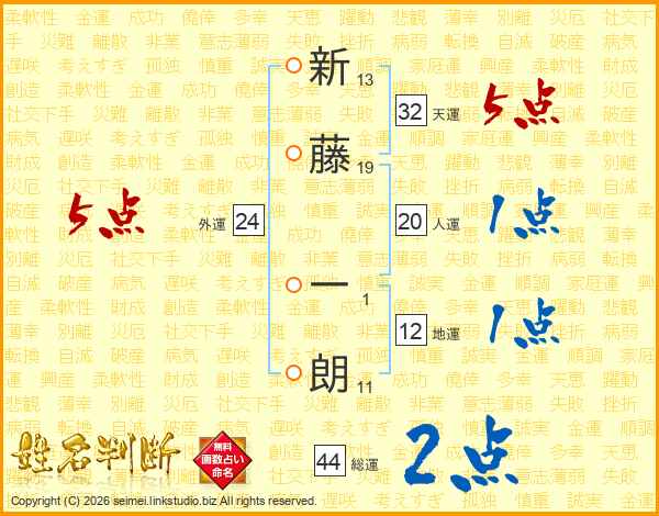 新藤一朗さんの総運は44画の2点!
