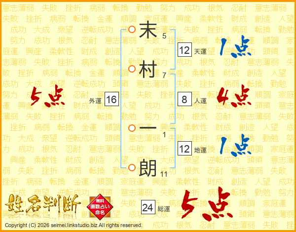 末村一朗さんの総運は24画の5点!