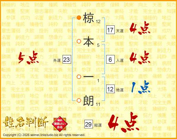 椋本一朗さんの総運は29画の4点!
