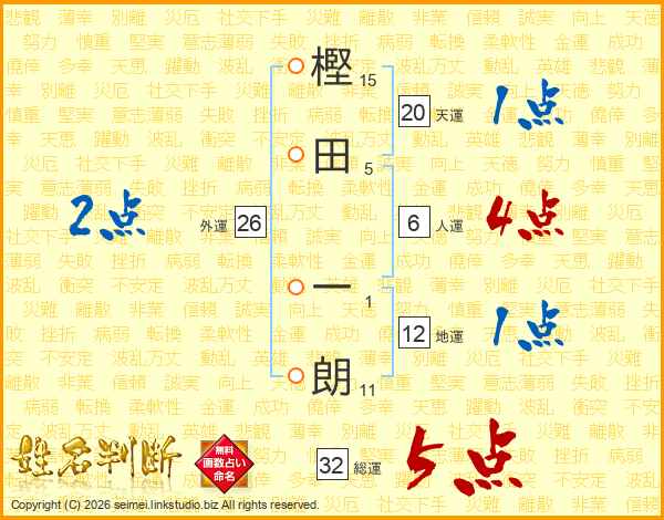 樫田一朗さんの総運は32画の5点!