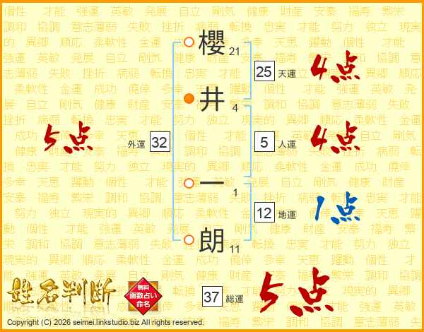 櫻井一朗さんの総運は37画の5点!