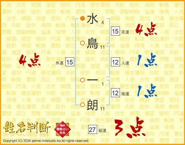 水鳥一朗さんの総運は27画の3点!