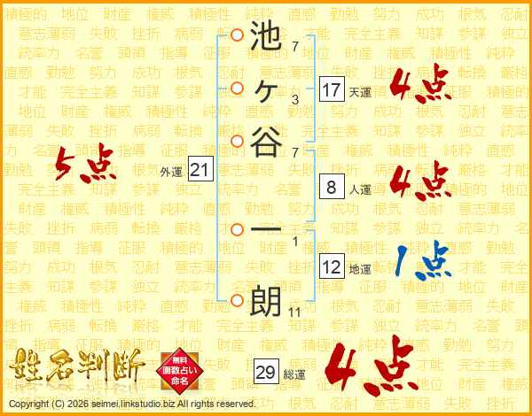 池ヶ谷一朗さんの総運は29画の4点!