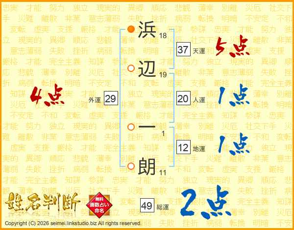 浜辺一朗さんの総運は49画の2点!