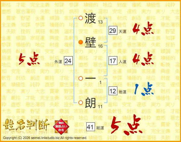 渡壁一朗さんの総運は41画の5点!