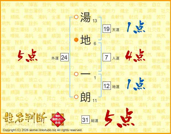 湯地一朗さんの総運は31画の5点!
