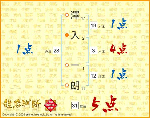 澤入一朗さんの総運は31画の5点!
