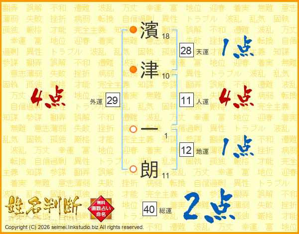 濱津一朗さんの人運は11画の4点!
