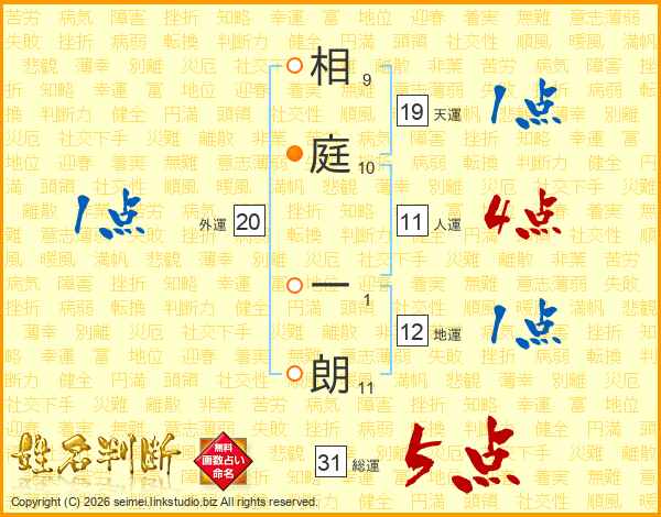 相庭一朗さんの総運は31画の5点!