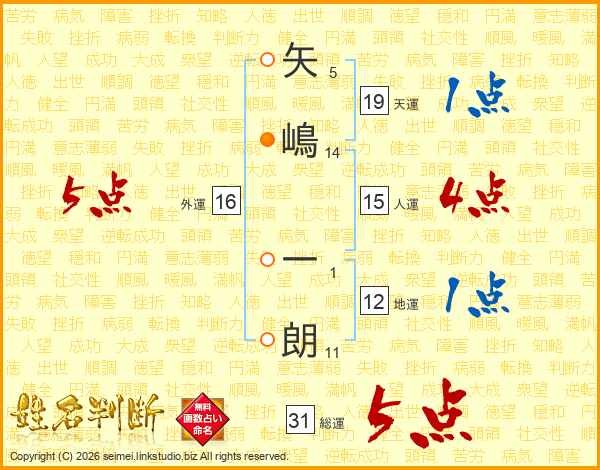 矢嶋一朗さんの総運は31画の5点!