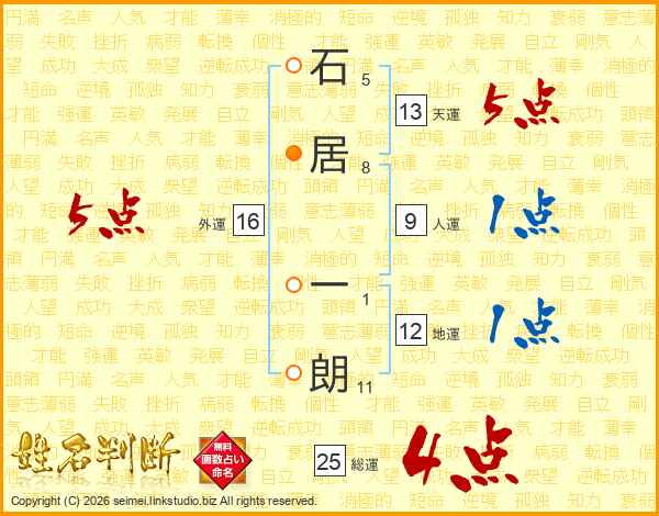 石居一朗さんの総運は25画の4点!
