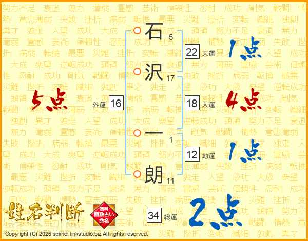 石沢一朗さんの天運は22画の1点!