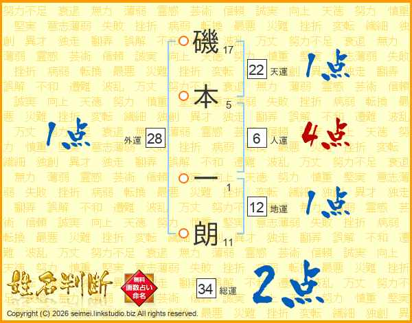 磯本一朗さんの天運は22画の1点!