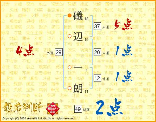 礒辺一朗さんの天運は37画の5点!
