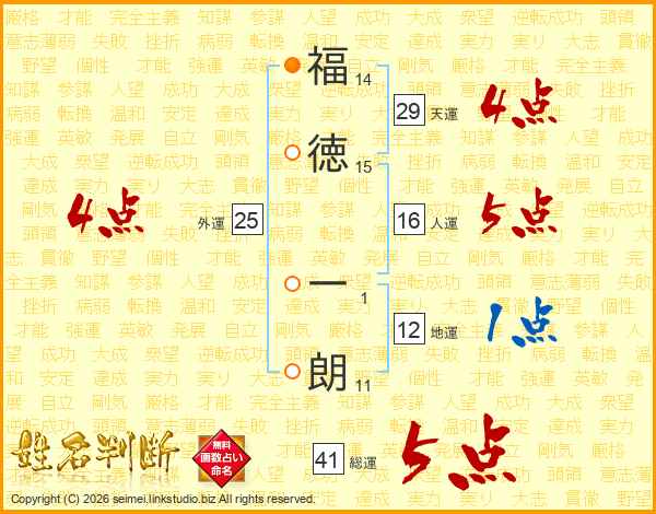 福徳一朗さんの総運は41画の5点!