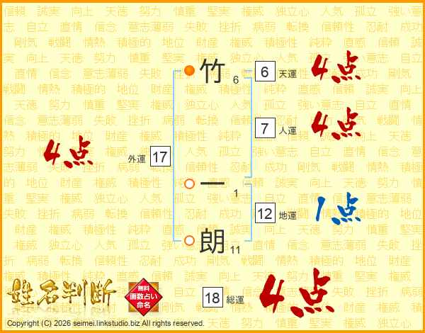 竹一朗さんの総運は18画の4点!
