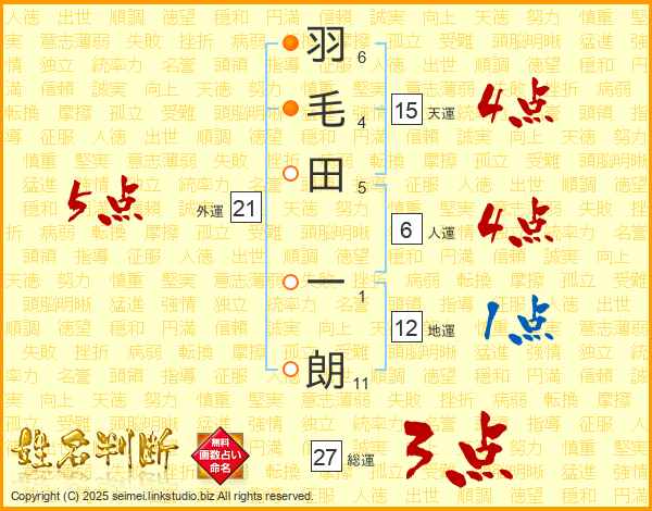 羽毛田一朗さんの総運は27画の3点!