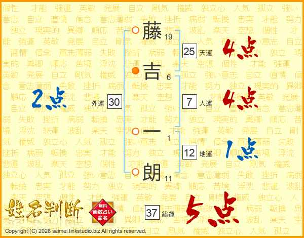 藤吉一朗さんの総運は37画の5点!