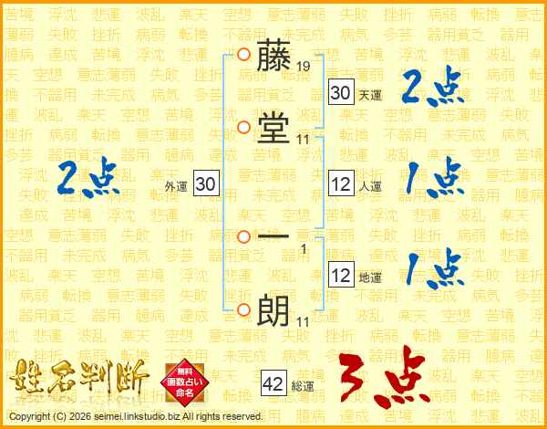藤堂一朗さんの総運は42画の3点!