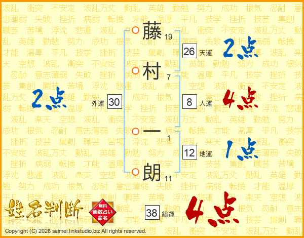藤村一朗さんの天運は26画の2点!