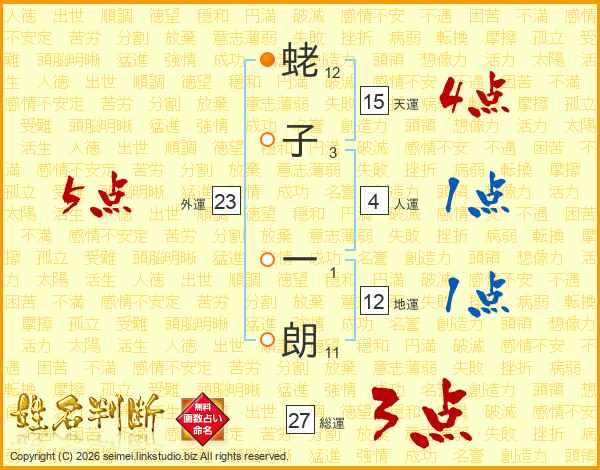 蛯子一朗さんの総運は27画の3点!