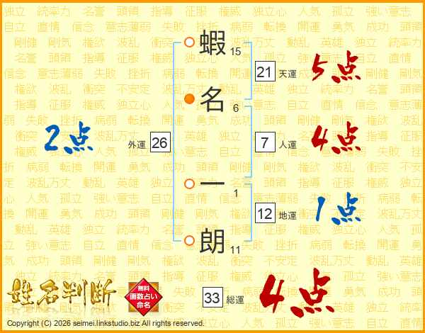 蝦名一朗さんの天運は21画の5点!