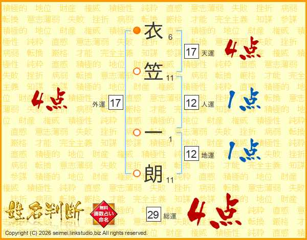 衣笠一朗さんの総運は29画の4点!