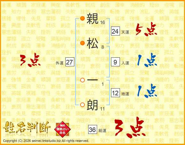 親松一朗さんの総運は36画の3点!
