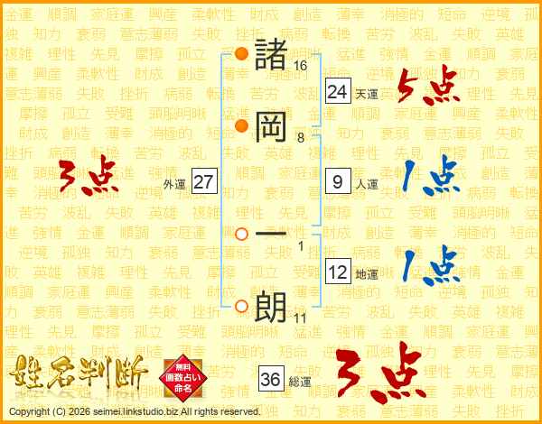 諸岡一朗さんの総運は36画の3点!