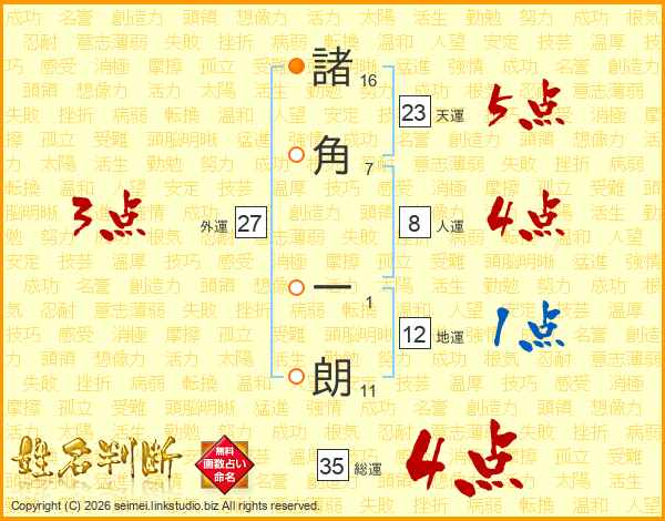 諸角一朗さんの総運は35画の4点!