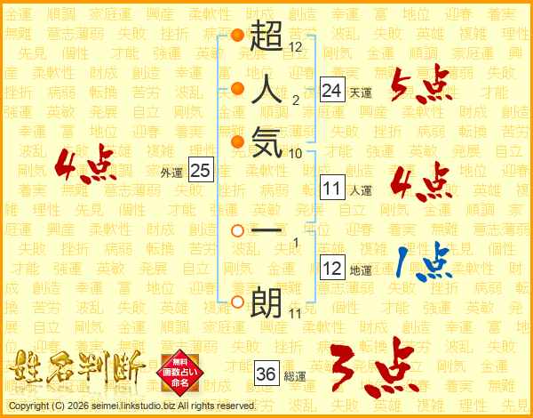 超人気一朗さんの総運は36画の3点!