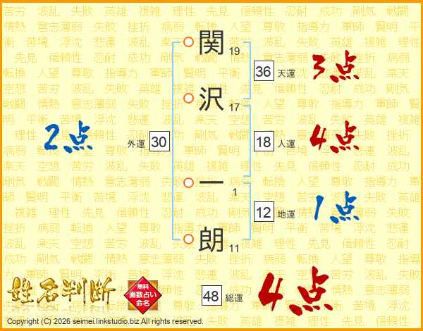 関沢一朗さんの総運は48画の4点!