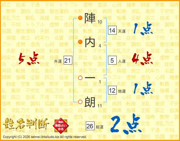 陣内一朗さんの総運は26画の2点!
