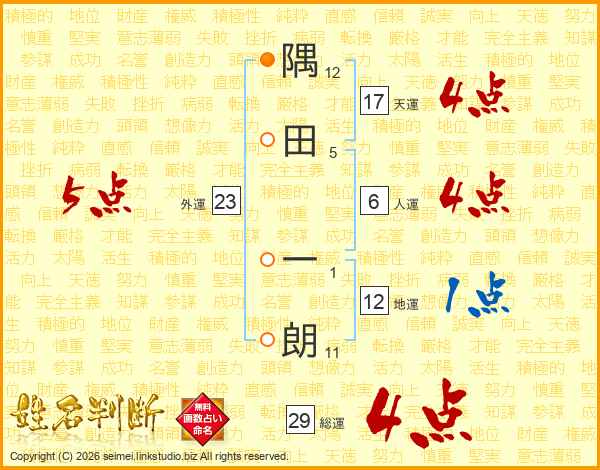 隅田一朗さんの総運は29画の4点!