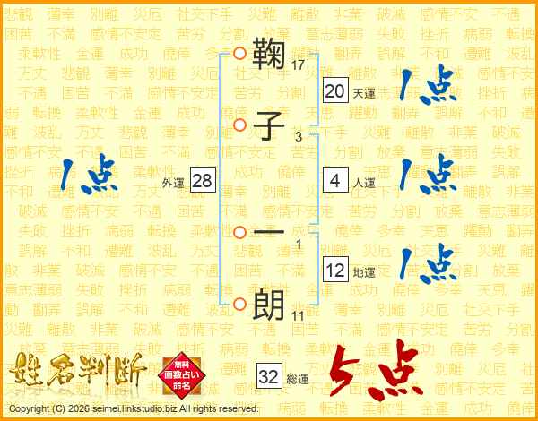 鞠(17画)子(3画) 一(1画)朗(11画)