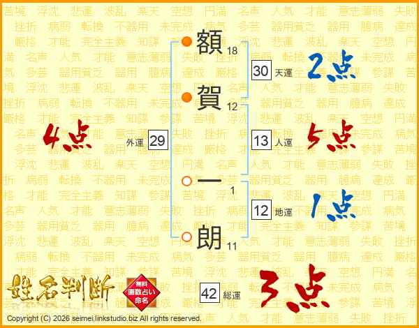 額賀一朗さんの総運は42画の3点!
