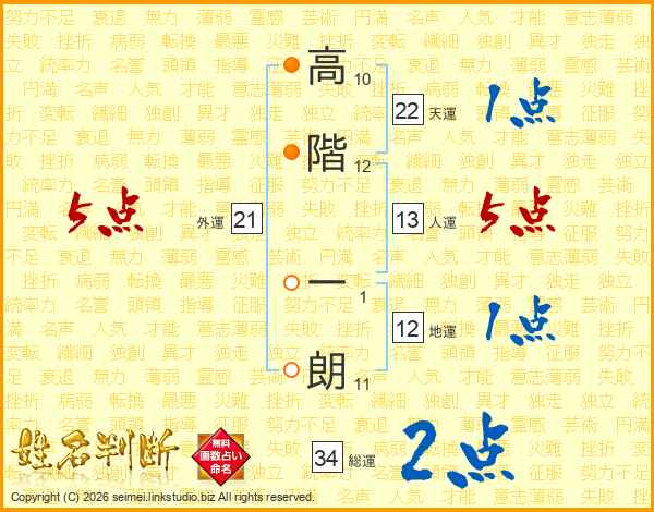 高階一朗さんの総運は34画の2点!