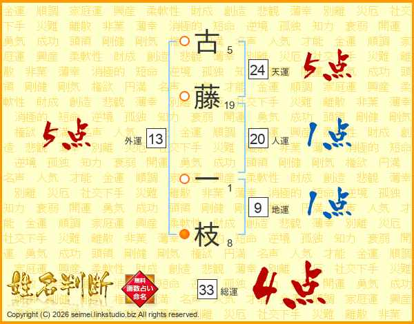 古藤一枝さんの総運は33画の4点!