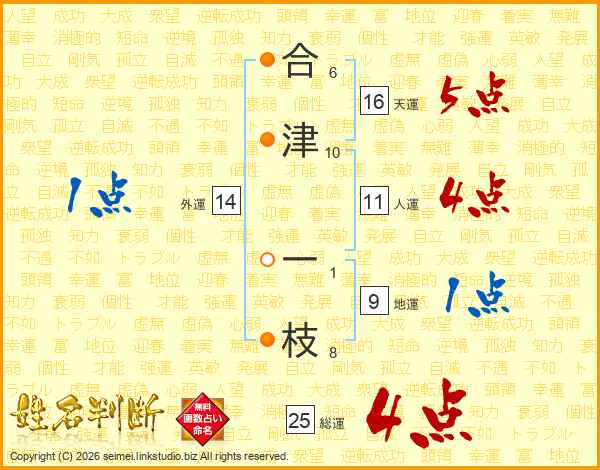 合津一枝さんの総運は25画の4点!