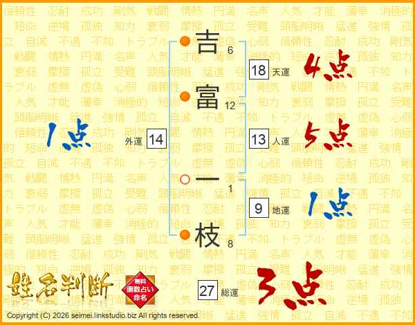 吉(6画)富(12画) 一(1画)枝(8画)