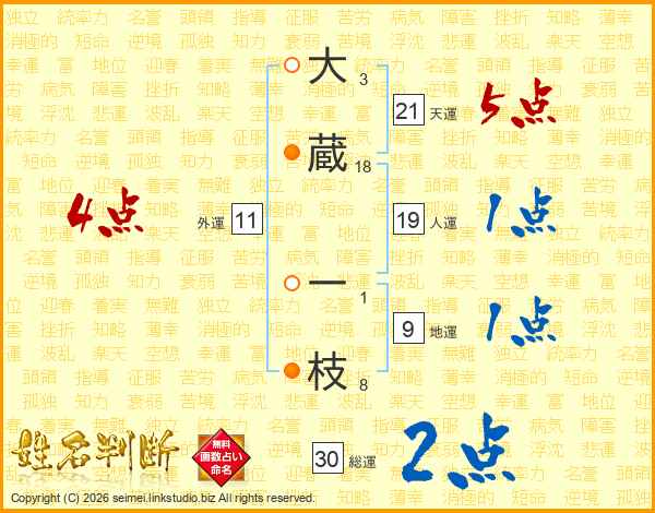 大(3画)蔵(18画) 一(1画)枝(8画)